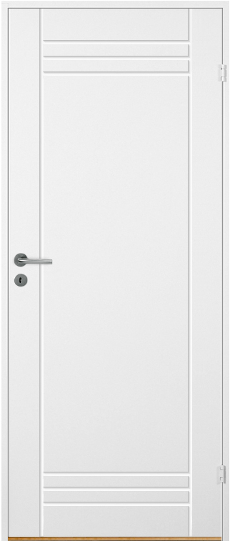 Vitmålad kompakt innerdörr med spårfräst dekor.