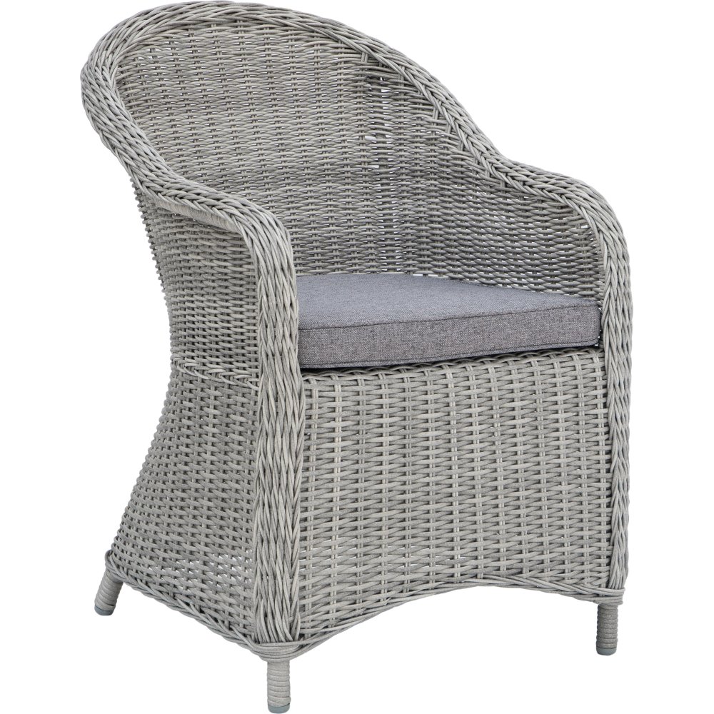 De trädgårdsstolar som medföljer i denna utemöbelgrupp är Malgovik och är tillverkade grå konstrottning och de sitt- samt ryggdynor som tillhör trädgårdsstolarna är tillverkade i en mörkgrå polyester,