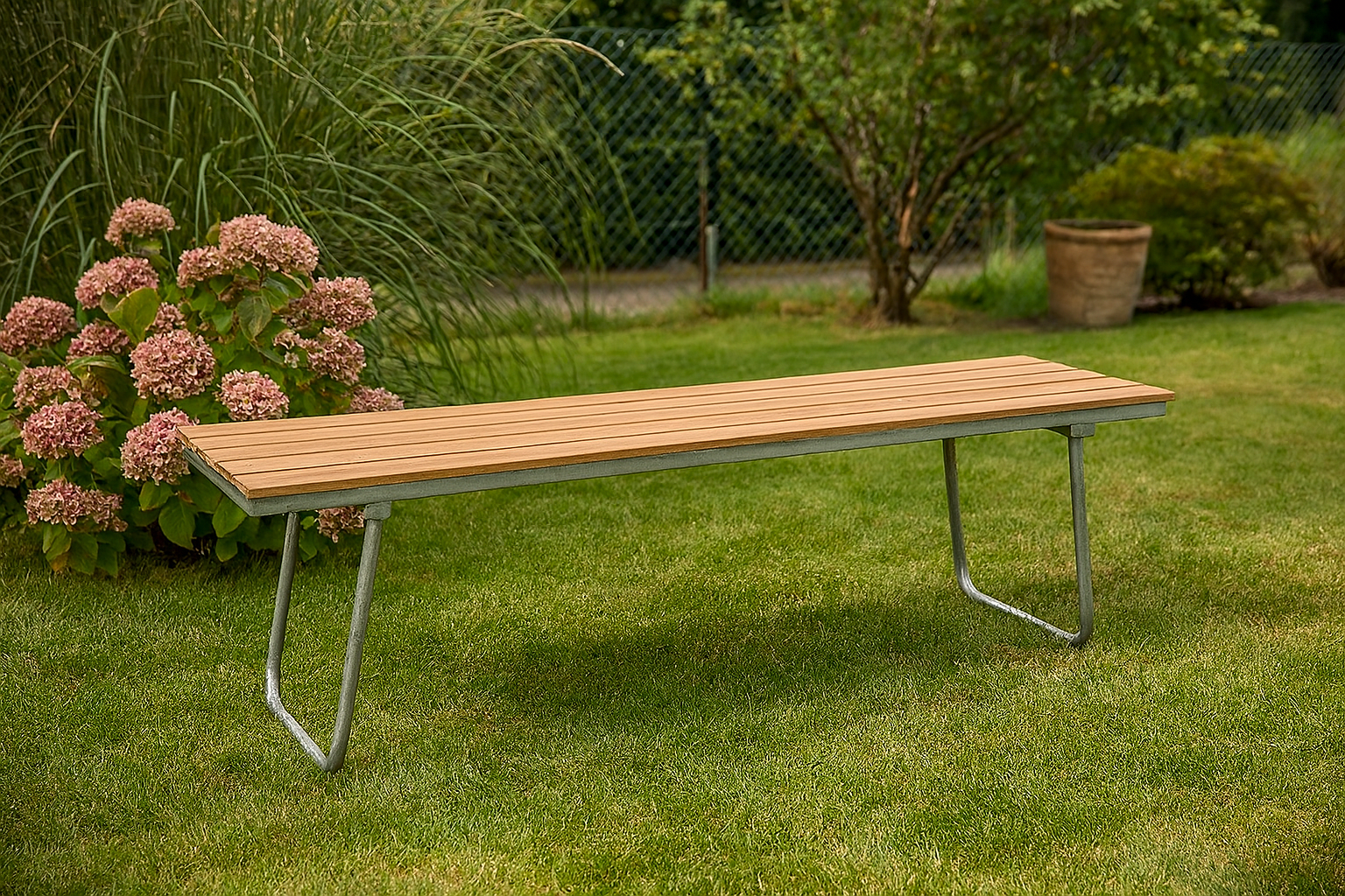 Möllan är en exklusiv serie i skandinavisk klassisk design. Utegruppen är tillverkad i galvaniserat stål med massivt oljat teakträ. Detta gör utegruppen väderbeständig och tålig för att klara uteplatsens miljö.