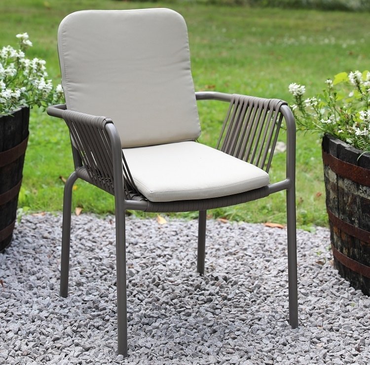 De trädgårdsstolar som medföljer i denna utemöbelgrupp är Lincoln och är gjorda i aluminium medföljer gör även beiga dynor för extra komfort. Stolen Lincoln är stapelbara och kan enkelt ställas undan vid behov. I den här utemöbelgruppen medföljer 6 stycken stolar.